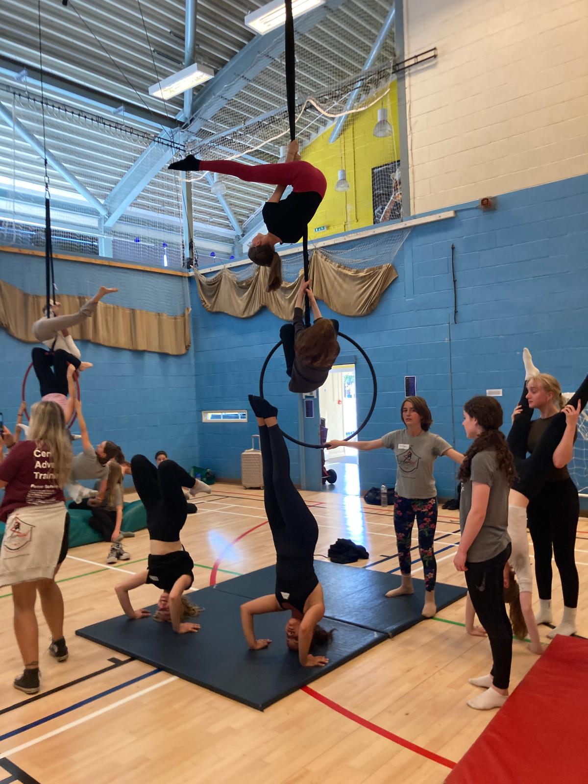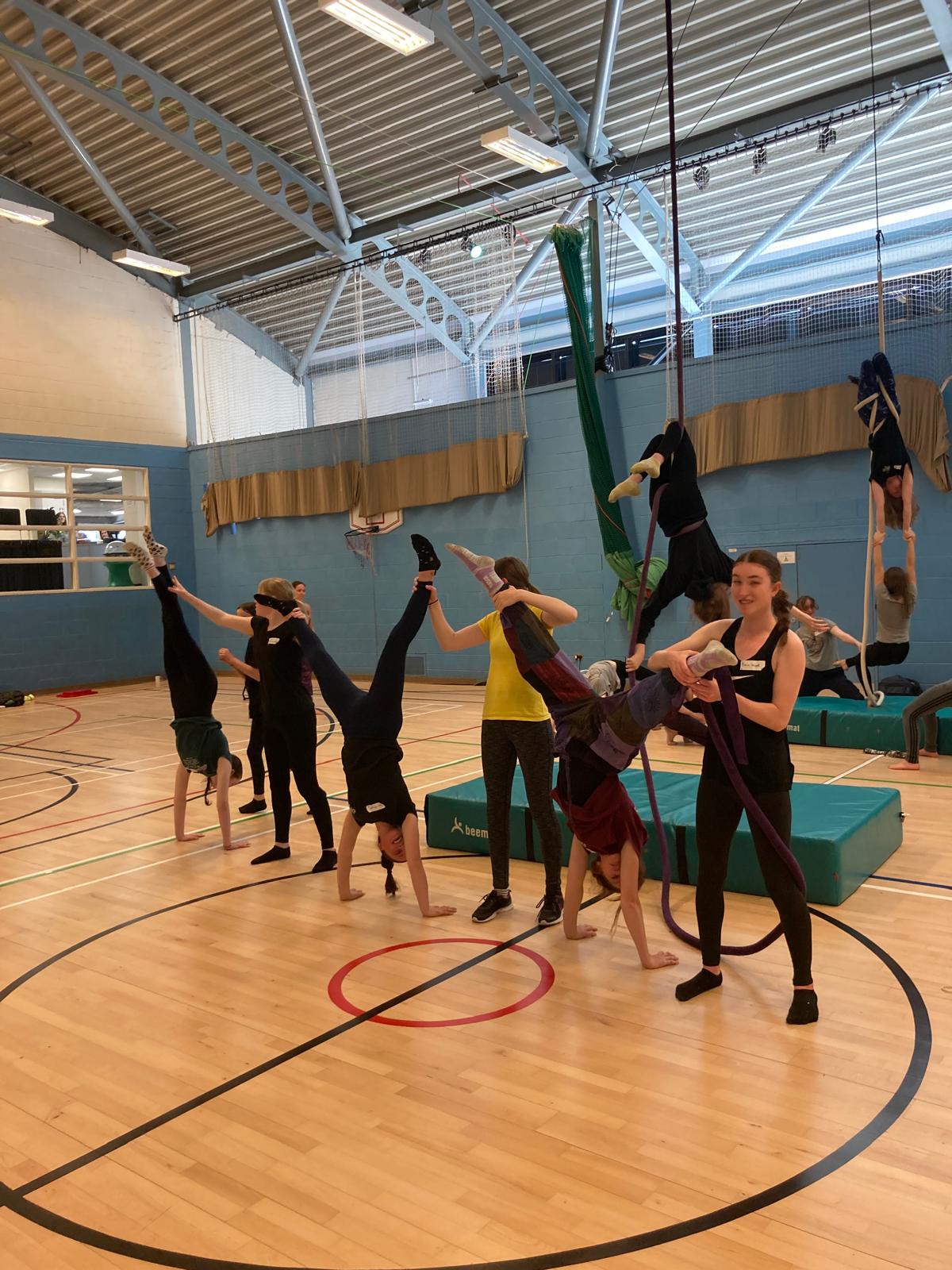 All or Nothing and Aerial Art House are currently jointly running the Scottish hub of the National Centre for Circus Arts‘ Centre for Advanced Training Scheme. As part of this programme we arranged a youth exchange event at the Dunblane Centre bringing together our performance groups from Edinburgh and Dunblane with students from Aerial Art House, Adventure Circus and Community Circus Paisley. The young people took part in workshops in aerial hoop, aerial rope, object manipulation and contortion and had the opportunity to learn more about the NCCA’s training programmes.